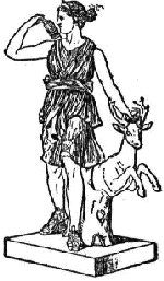 Artemis, datter af Zeus og Leto og tvillingsøster til Apollon. Hun er jagtens gudinde og gudinde for de vilde dyr og den uberørte natur. Når hun afbildes, er det almindelig i selskab med et af skovens dyr. Artemis påberåbes i forbindelse fødsler. Som sin broder er hun en stor bueskytte, Hun skyder pile, som ikke medfører smerte, hvorfor mange beder til hende om en smertefri død. Hun er fuld af modsætninger, snart venlig og mild, snart hård og grusom. Hun kan helbrede de dødelige, men også sprede sygdomme som spedalshhed og rabies.