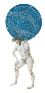 Atlas er søn af titanen Iapetos. Efter at have deltaget i titanernes slag mod de olympiske guder straffer Zeus Atlas ved at lade ham holde himmelhvælvingen på sine skuldre. Han står ved verdens ende - som den gang lå ved Gibraltarstrædet. Atlas har datteren Atlantis, som har givet navn til bl.a. sagnriget Atlantis og Atlanterhavet. Atlas er stor og stærk, men mangler måske lidt i intelligens. Det benytter helten Herakles sig af, da han er på jagt efter "Hesperidernes gyldne æbler", som vokser på et træ langt mod vest, bevogtet af en farlig slange. Det er en af de 12 opgaver, som Herakles skal udføre for kong Eurystheus af Mykene. På vejen vestpå kommer Herakles forbi Atlas, der står med himmelhvælvingen på sine skuldre. Den elskværdige Atlas tilbyder at hente æblerne til Herakles, hvis han så lige vil holde himmelhvælvingen imens. Herakles, som jo er en superhelt og søn af Zeus, slår til og får god brug for sine umådelige kræfter. Da Atlas vender tilbage med æblerne, får han den ide, at Herakles vil være en fin afløser - han er formentlig blevet lidt træt af den monotone arbejde. Atlas beder Herakles om at holde stillingen, mens han selv bringer æblerne til Eurytheus. Herakles, som nok har lugten lunten, indvilger, men beder lige om tilladelse til at hente en pude til sine ømme skuldre, hvis bare Atlas lige vil holde himmelhvælvingen imens. Det går den godmodige Atlas ind på, og Herakles drager afsted. Atlas står stadig og venter på, at Herakles skal vende tilbage.