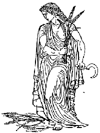 Demeter, kornets gudinde, er datter af Kronos og Rhea og således søster til Zeus. Med Zeus har hun datteren Persefone, som, hvilket du sikkert lige har læst, er gift med underverdens konge Hades. Seks måneder om året har Demeter besøg af sin datter Persefone, og i den tid blomstrer kornet og andre vækster på jorden, og Demeter er lykkelig. De andre seks måneder er Demeter hensunken i sorg og længsel. Demeter er således et symbol på de skiftende årstider. Hendes symboler er slangen, som lever i jorden, samt faklen, som hun medbragte under sin søgen efter Persefone i underverden. Hendes hellige dyr er svinet, som er et frugtbarhedssymbol.