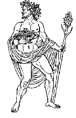 Dionysos er et produkt af en af Zeus´ mange affærer. Moderen er Semele, datter af Cadmus af Theben. Da Hera opdager, at Semele er gravid med Zeus' barn, indynder hun sig ved Semele og lokker hende til at bede Zeus om at vise sig for hende i al sin magt og vælde og dermed vise, at han er guddommelig. Zeus nægter først, men lader sig overtale, og det ender med, at Semele bliver dræbt af Zeus' lyn. Det lykkes Zeus at overføre fostret til sit lår, hvorfra Dionysos bliver født nogle måneder senere. Derfor bliver Dionysos også kaldt for "den to gange fødte", idet han er født af både Semele og Zeus. Zeus har selvfølgelig ikke tid til at opfostre Dionysos, så han bliver overdraget til nogle nymfer. Da han er voksen, vender han tilbage og får en plads på Olympen. Han gør sin moder udødelig og lever et liv i luksus. Dionysos er vinens gud. Han introducerer dyrkning og fremstilling af vin. Han fester igennem og drikker vin i stride strømme og opnår derved en ekstatisk rus. Han er også vin for galskab, vegetation og teatret. Dionysos bliver tilbedt i forskellige mystiske kulter.