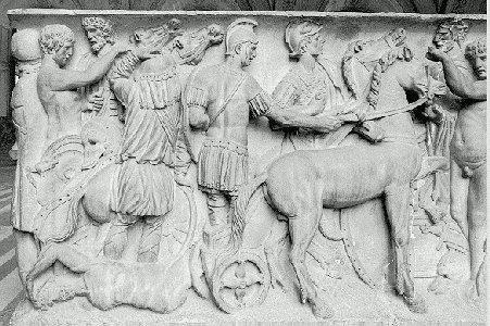 Æneas, der som nævnt er søn af Afrodite, er en af de ganske få trojanere, som overlever Trojas ødelæggelse. Ifølge legende lykkes det Æneas at flygte fra det brændende Troja, og efter mange genvordigheder kommer han til Latium, hvor han bliver gift med latinerkongens datter Lavinia. Med hende bliver han stamfader til alle senere romere, heriblandt Romulus og Remus. Således får romerne en tilknytning til de grækere, som de beundrede så højt. Digteren Vergil (71-19 fvt.) beretter herom i sit heltedigt, Æneiden - men det er en helt anden historie, som jeg ikke vil fortælle her.