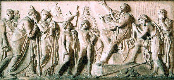 Hvis du som jeg har gået i skole i 1950'erne, husker du formentlig ovenstående indledning til Homers "Iliaden" i Christian Wilsters oversættelse fra 1836. Siden har Otto Sten Due i 1999 lavet en dejlig nutidig oversættelse (eller rettere gendigtning) af værket, som er meget læseværdig og læsevenlig. I 2006 fik jeg en dejlig julegave af Danmarks Radio, nemlig mulighed for at downloade alle 43 afsnit af Iliaden i mp3-format. Oven i købet oplæst af Otto Sten Due selv og med musik af Fuzzy - "næsten et helt døgns beretning om krig og kærlighed i selskab med græske guder, smukke kvinder og drabelige helte". Jeg hører jævnlig et kapital fra værket, når jeg slapper af ved min computer.