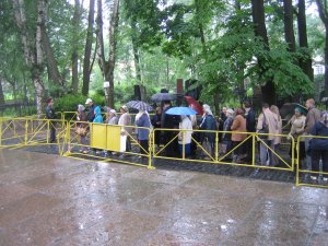 Vi fortsætter lige frem og kommer til Treenighedskatedralen (Troitsky Sobor), som er en af de få kirker, som i hvert fald delvist fik lov til at udføre sine religiøse funktioner under sovjettiden. Hver morgen er der messe i Treenighedskatedralen foran skrinet med helgenens jordiske rester, og der var en lang kø af kirkegængere udenfor katedralen. Det lykkedes mig ikke at finde ud af, om den 18. juni 2007 var en særlig dag, så jeg antager, at det er tilfældet hver dag. Inde i katedralen var kirkegængerne adskilt fra turisterne ved snore, så det lykkedes mig ikke at observere de nærmere detaljer. Især den kæmpemæssige forgyldte ikonostase er betagende. Den store kuppel er indvendigt udsmykket med fresker, som synes at nå helt op til himlen. De jordiske rester af mere end 80 hellige personer ligger i Treenighedskatedralen. Udover Alexander Nevsky er det et stort antal apostle, martyrer og biskopper, hvoraf mange er helgenkårede.