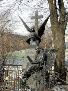 Til den anden side ligger Tikhvin-kirkegården, hvor byens store forfattere og komponister er begravet: Dostojevsky, Rubinstein, Rimsky-Korsakov, Mussorgsky, Borodin, Glinka og Tjaikovsky. Der skal løses billet for at komme ind på de to kirkegårde. Til gengæld får du et lille kort over placeringen af de mest berømte gravsteder.