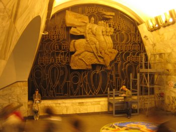 Metroen begyndte at køre i 1955 og der kommer stadig nye stationer til længere og længere ude, så nettet i dag har en samlet længde på godt 100 km. Man begyndte at anlægge en 5. linie i 1990'erne, men arbejdet blev indstillet pga finansielle problemer. I myldretiden (8.00-9.00, 17.00-19.00) kører der tog med 2 minutters intervaller, udenfor er der fire minutter mellem afgangene. Som i Moskva er de ældre metrostationer rene kunstværker med deres symbolmættede udsmykning. På endevæggen af metrostationen "Alexander Nevsky" ("Aleksandra Nevskogo") var (selvfølgelig) et monument for byens skytshelgen af samme navn; ham kommer du til at høre mere om om lidt.